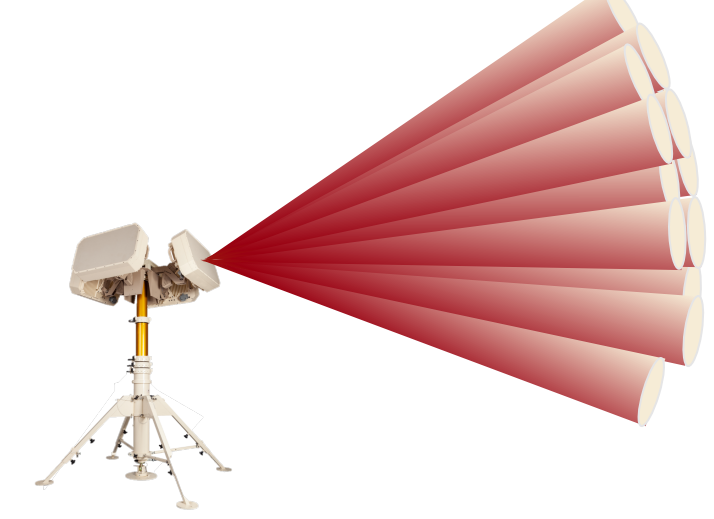 MIMO雷达可在整个视线范围内进行一次性探测。它代表了惊人的刷新率,极大地提高了无人机探测和跟踪能力,包括无人机群。无移动部件决定了更好的可用性。